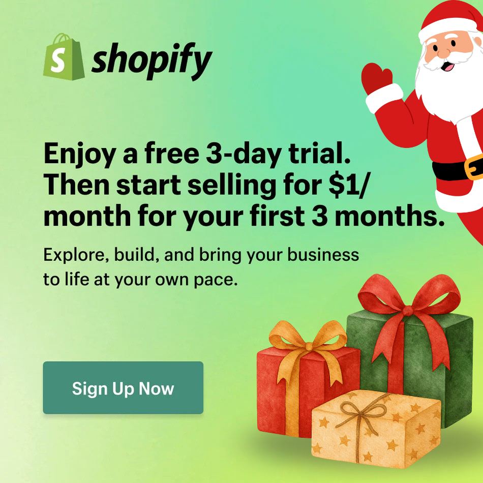 Start Shopify for free, then enjoy your first 3 months for $1/month.